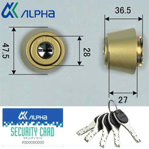 アルファFBロック ALPHA(アルファ)FB-LE/LSP-A ゴールド色 鍵 交換キー5本付、セキュリティカード付